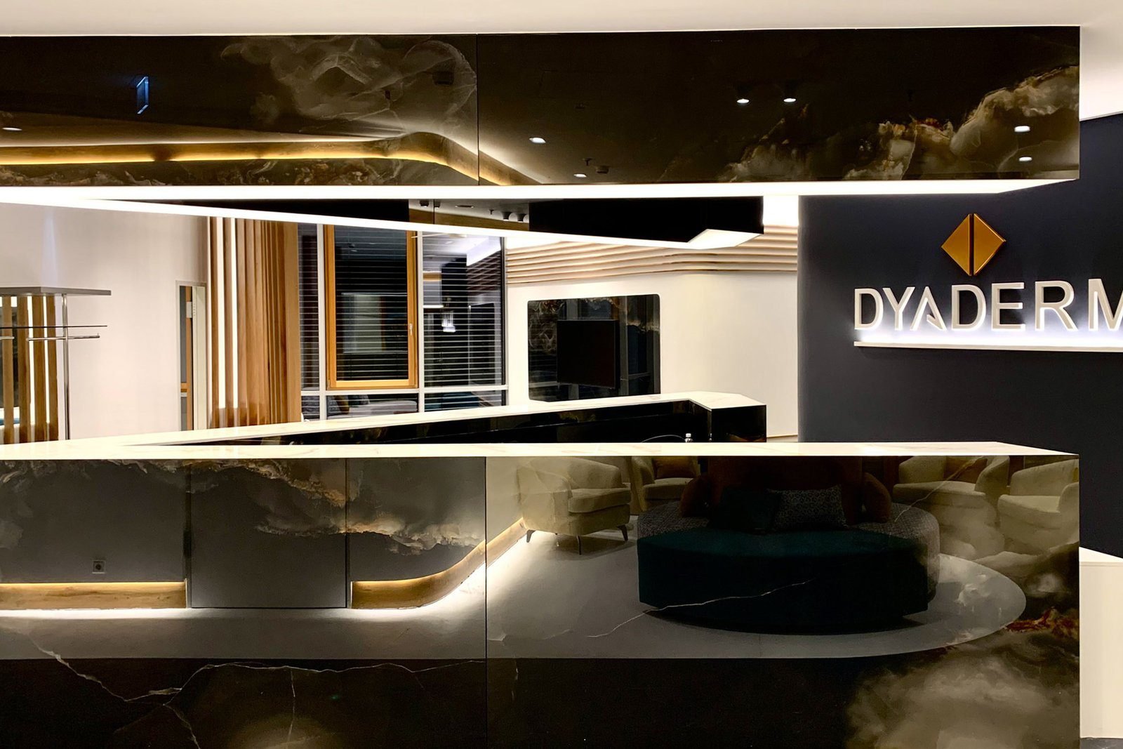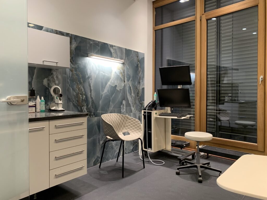 This project, located in Düsseldorf, Germany, is a 500 m² dermatology clinic designed with a strong focus on contemporary elegance and fluid architectural geometry. The space blends functionality and aesthetics through curved forms, indirect lighting, and refined material contrasts. Warm wooden slats, soft neutral tones, and seamless LED integrations define the reception and waiting areas, creating a calm and welcoming environment.