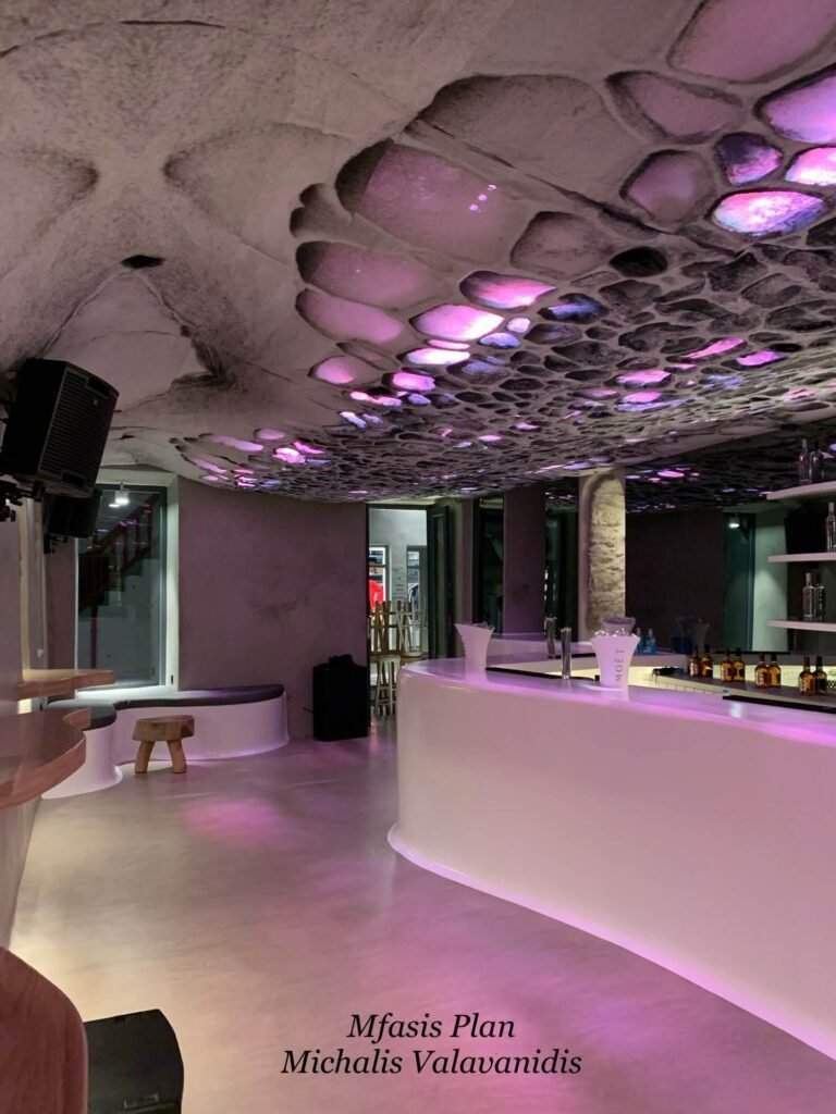 An exceptionally distinctive project with numerous challenges and constraints due to its location within the traditional settlement of Mykonos, requiring respect for Cycladic vernacular architecture while integrating contemporary trends and modern-day needs. The architectural approach was based on a modern interpretation of elasticity and curvature in form, introducing a sense of movement and sculptural spontaneity within the space — characteristics deeply rooted in the essence of traditional Cycladic architecture.