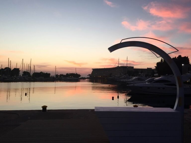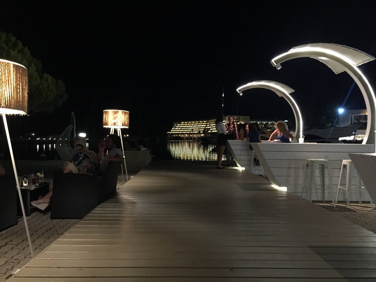 This composition blends marine aesthetics with architectural minimalism, transforming a simple structural gesture into an iconic landmark within the marina landscape.