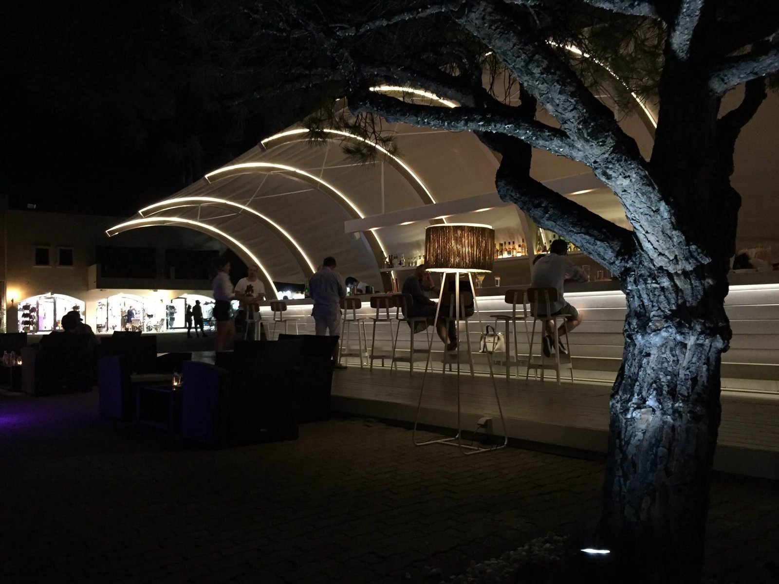The illuminated ribs integrate linear LED lighting, accentuating the curvature and generating a sense of fluid continuity throughout the night.